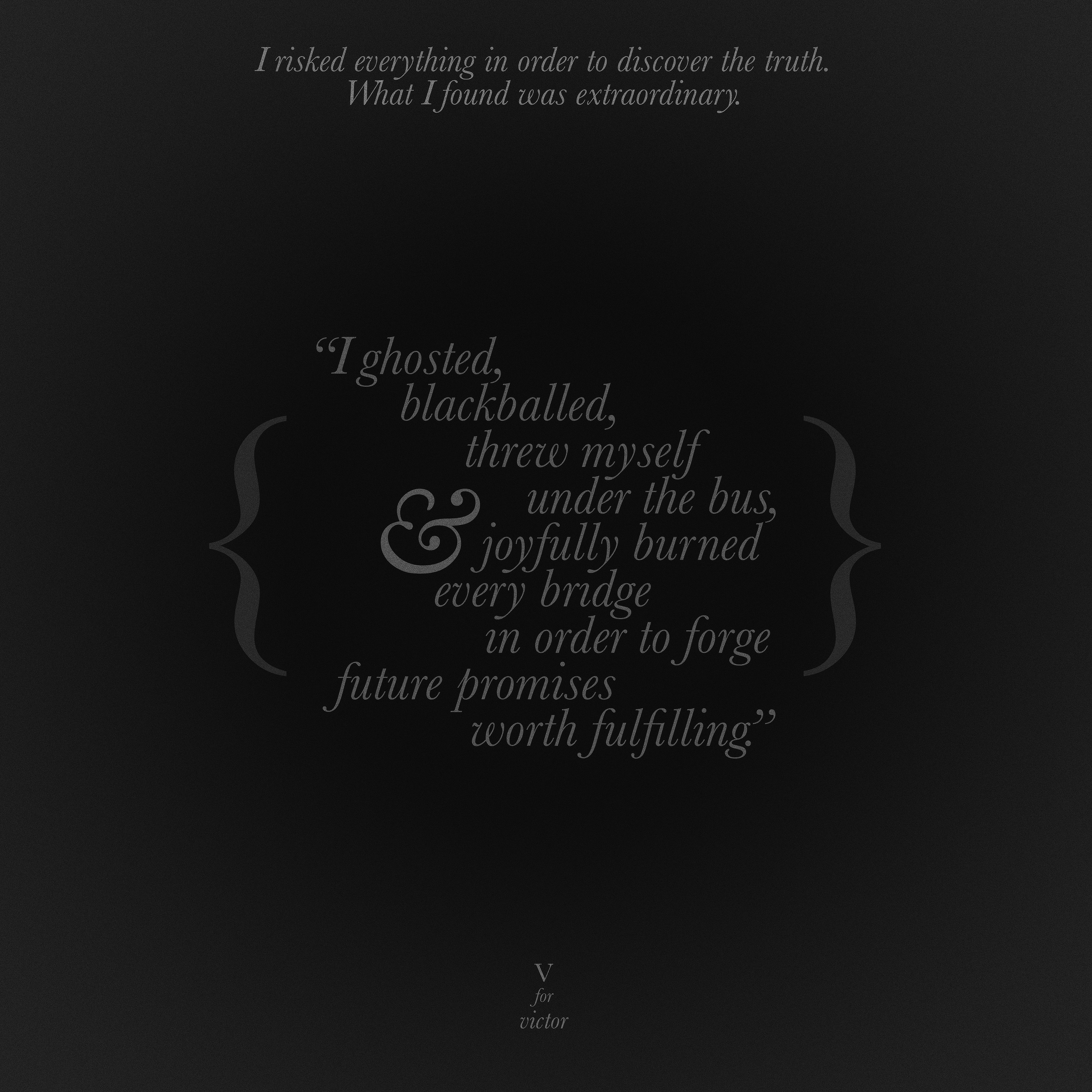 “I began to see the dark and the light simultaneously giving me insight into the love language of letterform lockups and ligatures. During my senior year in high school my AP Art concentration was ‘stencils applied across various media.’ Graphic design was in my DNA.”