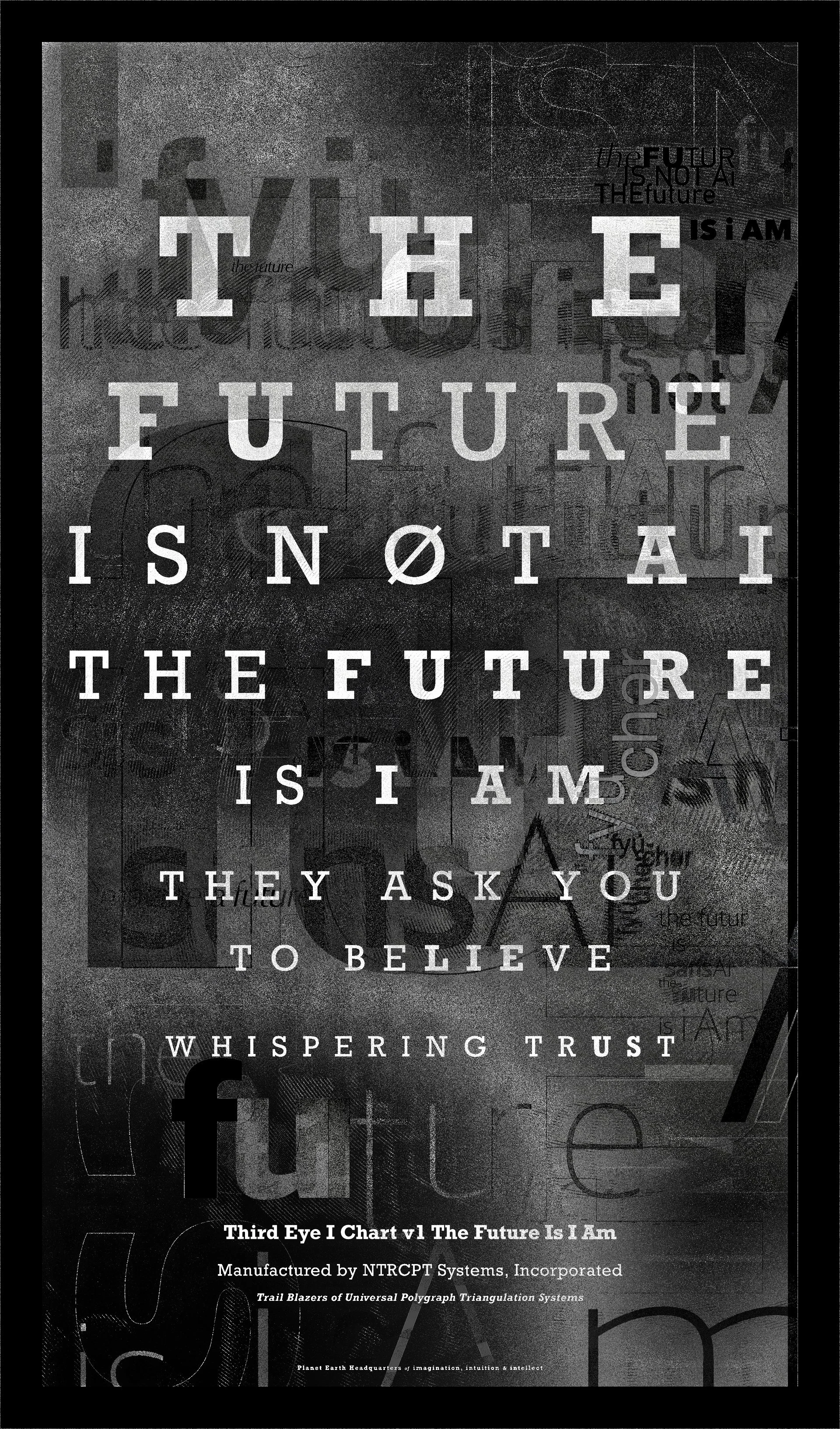 “The FU Future Is Not AI. The Future Is I Am. They Ask You To Believe, Lie, Whispering Trust Us.” — Third Eye I Chart v1 The Future Is I Am Manufactured by NTRCPT Systems, Incorporated. Trail Blazers of Universal Polygraph Triangulation Systems.