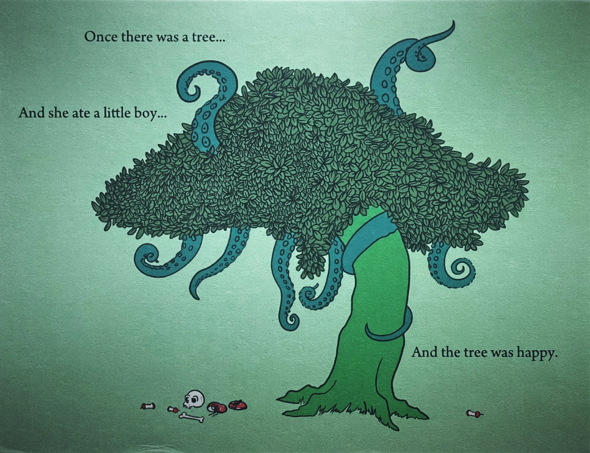 Dare to surprise your audience. My daughter gave me this card for my birthday many years ago. We used to read Shel Silverstein’s The Giving Tree at bedtime. What a fun twist in this card design and illustration by Horrible Greetings, copyright 2020 Happy Cup Studios.